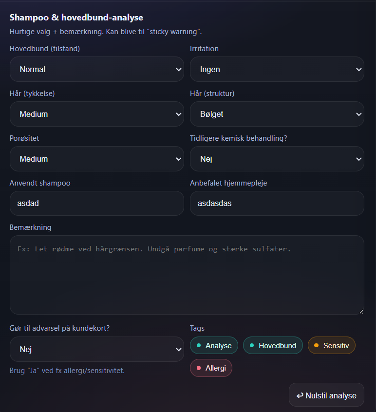 Introduces a flexible 'Add Note' panel for customer journals with: - Configurable note tags - Visibility and marking options - Interactive UI for note creation Improves user experience for salon staff note management