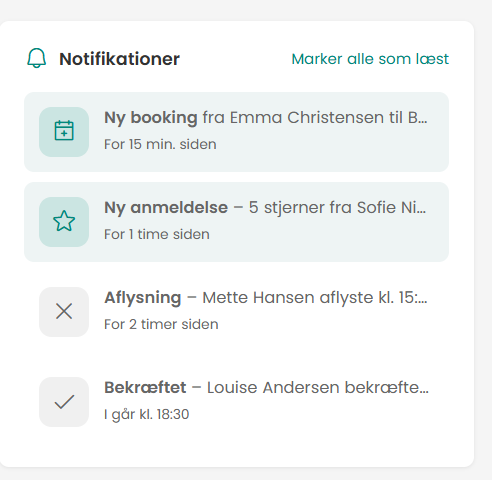 Introduces reusable view components for bookings and notifications Implements dynamic rendering of booking items and lists Adds corresponding CSS styles for new dashboard components Enhances dashboard user interface with interactive elements